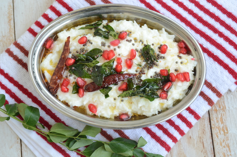 One of the most popular south Indian dishes, curd rice finds it way on most days in most homes in the states of Karnataka, Kerala and Tamil Nadu and is specially famous with Brahmin families. Whether there is a potluck party, birthday dinner or a big ritual, curd rice is pretty much always served. It’s also easy to find curd rice in most buffets in south India. It makes a complete meal by itself or can be had with any south Indian vegetarian or meat curry or with some nice and hot south Indian pickle made from lemon or raw mango or chutney. My south Indian friends also call it one of the most light and comfortable dishes of all times as the cooking time is really less. It is a great dish to be given to kids as a school lunch meal or taken to the office as a side dish.
