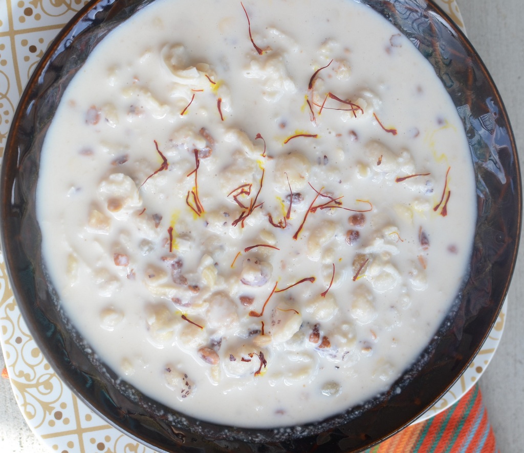 As we say no Indian meal is complete without a dessert, Phool makhane ki kheer is one such creation which is loved by one and all and can be used as a dessert in an Indian meal. Just the presence of this kheer enhances the look of the dessert table and tempts you more and more towards itself. The taste comes from simmering pure desi ghee, cardamoms, kesar, dry fruits such as almonds and pistachios in boiled milk. The kheer is liked cold or hot based on personal choice. However, I recommend serving it cold, right out of the refrigerator. The kheer can be kept easily for 2-3 days when chilled. So go ahead and make your own phool makhane ki kheer with this easy to follow recipe and enjoy it as a dessert!