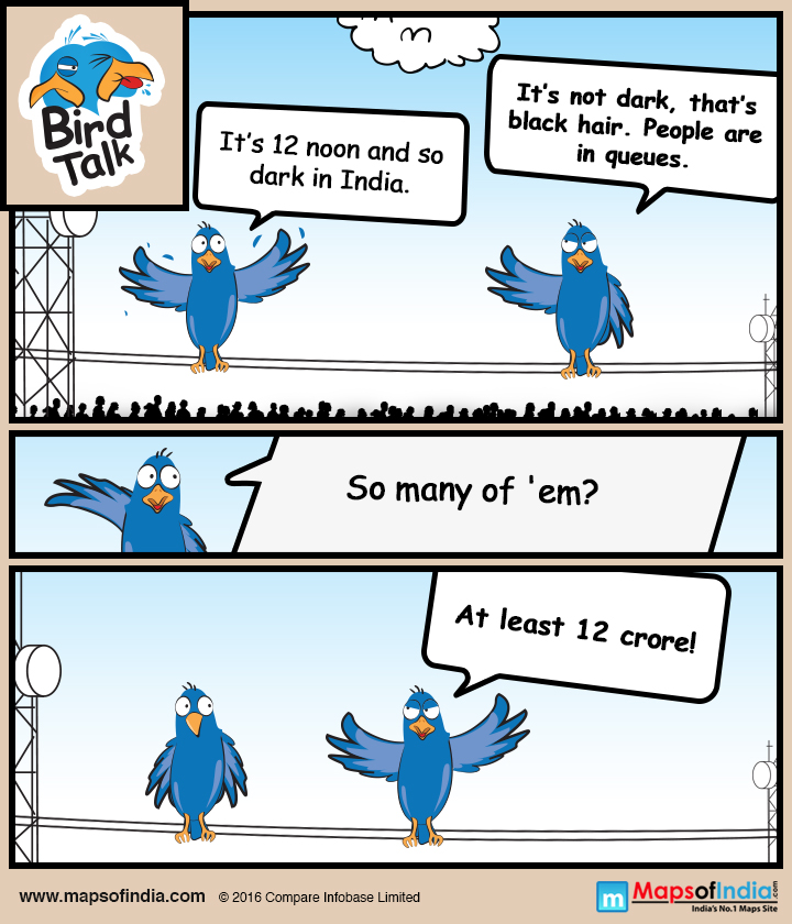 Cartoon Bird Talk is here with note ban joke: queues all over India.