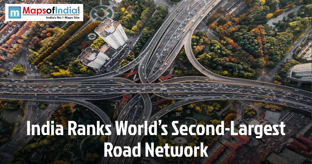 Aerial view of a major highway interchange in India, showcasing the country’s vast road infrastructure as it ranks second globally for the largest road network.