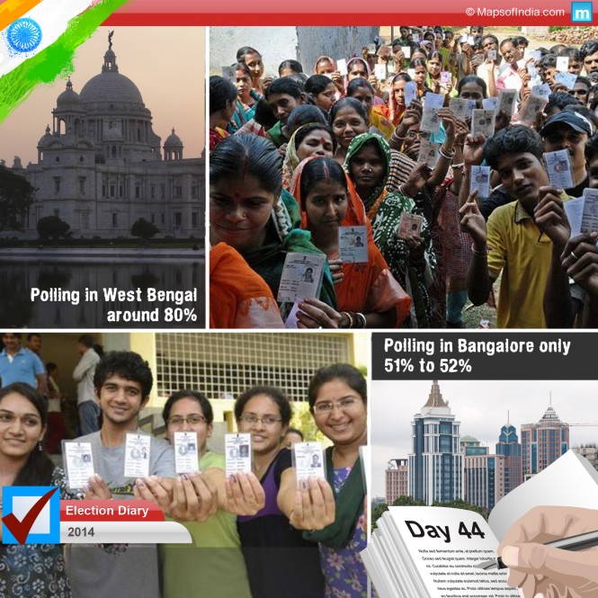 While elite Bangalore was lukewarm to voting, in other places people flocked to booths in large numbers notwithstanding the intense heat. Today was the largest phase of polling with 121 seats up for grabs spanning across 12 states. In West Bengal, polling percentage was 78.9, expected to go up to 82%. In UP 62.5% people voted compared to 55.09% in 2009. Odisha saw a poll percentage of 70.