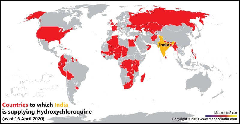 Map of World Showing Countries to Which India is Supplying Hydroxychloroquine