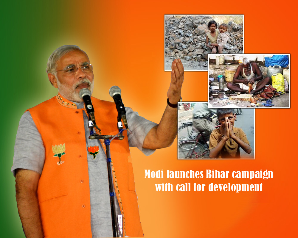 Narendra Modi launched his Bihar campaign with a call for development of Bihar at a mega rally in Banka. In his signature style he spoke about the need to reverse 68 years of backwardness that Bihar had suffered and that the time had come for Bihar to reclaim its path to development. He spoke of how his special package to Bihar of 1.65 lakh crore was going to transform Bihar and bring it back to a frontline state.