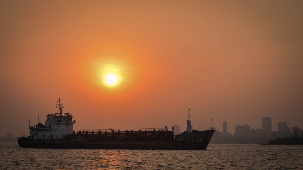 The breathtaking view of a ship sailing as the sun sets over the sea