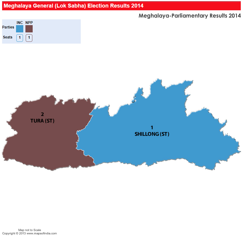 *Map showing the constituency wise Meghalaya General Election Results 2014.