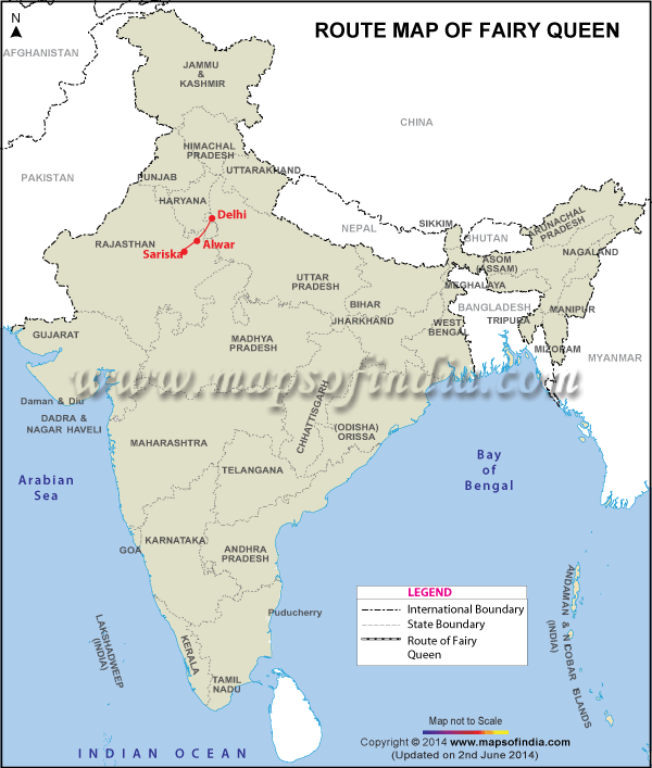 | *Map showing the Fairy Queen Route Map in India.