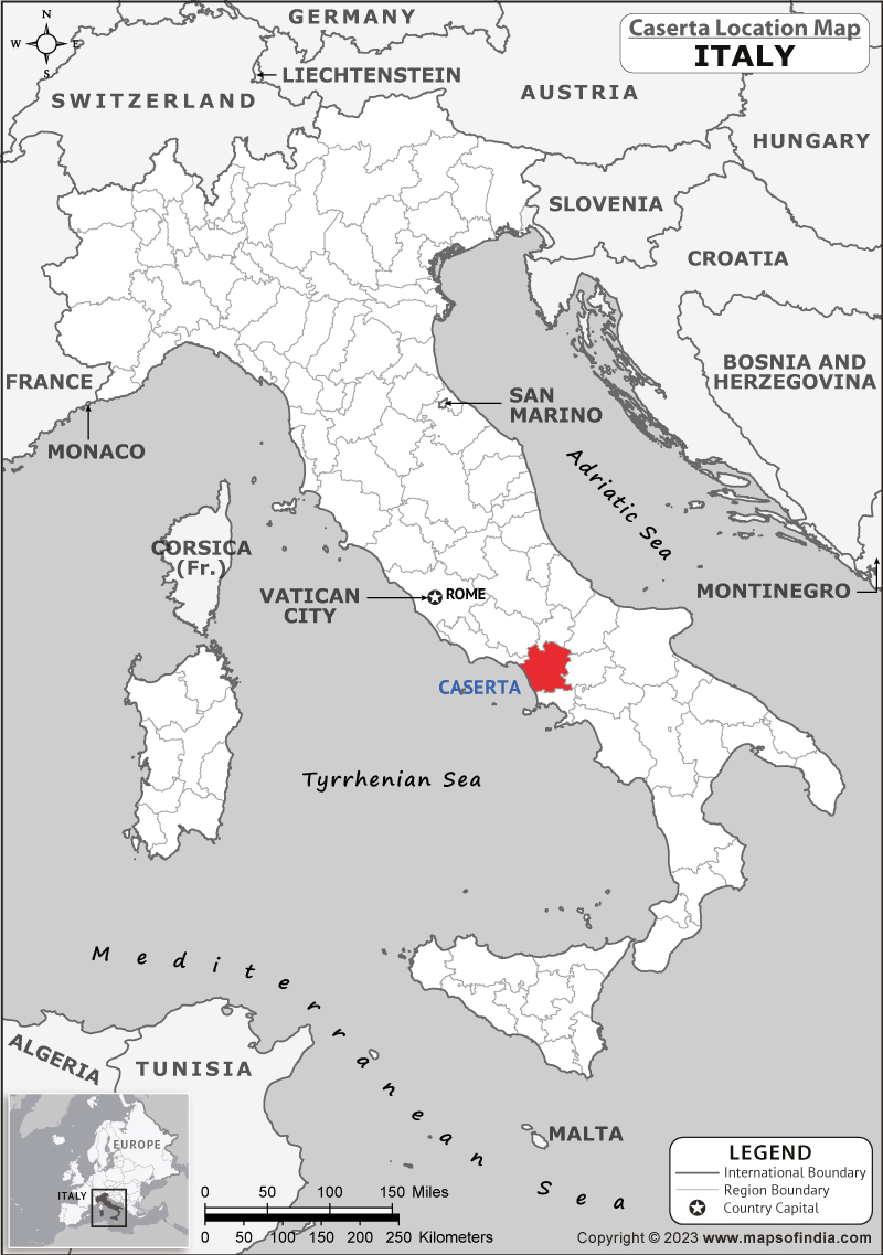 Map showing location of Caserta state in the Italy |